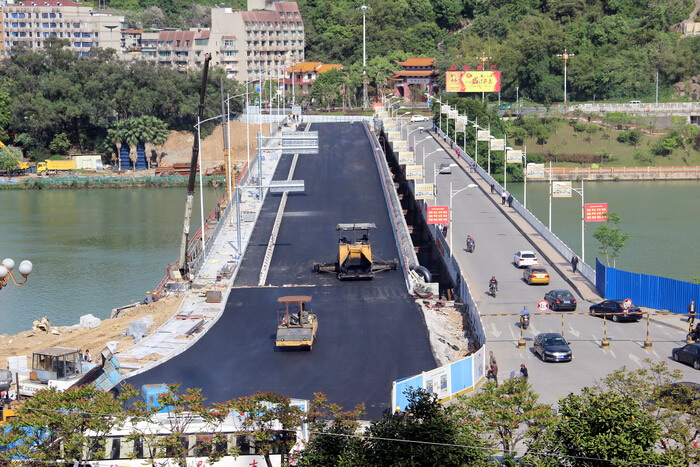 4月13日,列东大桥及桥头两侧改造工程进行桥面沥青摊铺。该工程目前已经完成半幅桥梁路灯安装架设,即将于5月初试行半幅通行。该桥总长度约为234米,总宽约为38米,设计时速为40公里/小时,设计为双向六车道。